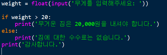 사용자로부터 무게를 입력 받고 지불할 금액을 계산하는 프로그램을 만들어보자.