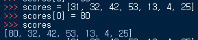 scores[i]는 변수 i에 해당된 번호의 리스트 요소가 된다.