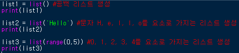 위의 방법들은 초기값을 사용하여 리스트를 생성하는 방법과 동일하다.