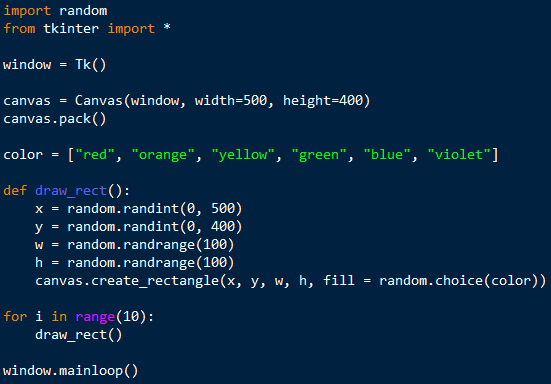 - 윈도우 하나 만들고 여기에 랜덤한 크기의 사각형을 여러 개 그려보자.(실행과 동시에 그려짐)