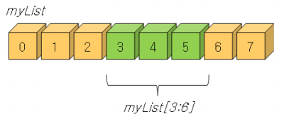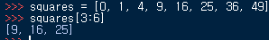 리스트이름[start : end]와 같은 형식으로 사용한다. start인덱스에 있는 요소부터