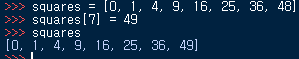 | [] | 인덱스 | myList[1] | myList의 1번째 요소 |