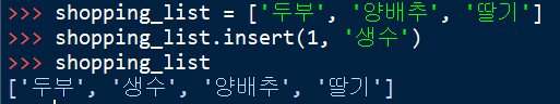 특정한 위치에 새로운 요소를 추가하기 위해서는 insert()메소드를 사용한다.